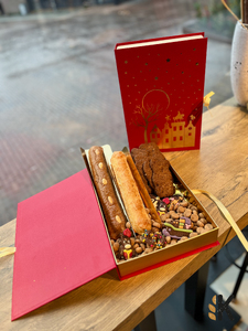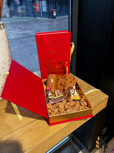 Van onze luxe Grote Sinterklaasboeken tot de compacte Sint-geschenksets: alles wordt gevuld met speculaas, chocolade, kruidnoten en andere seizoensfavorieten. Liever iets op maat? Dat kan natuurlijk. We denken graag met je mee voor het perfecte pakket.